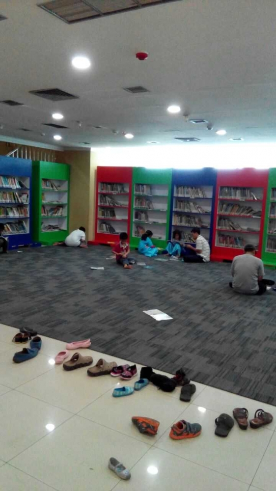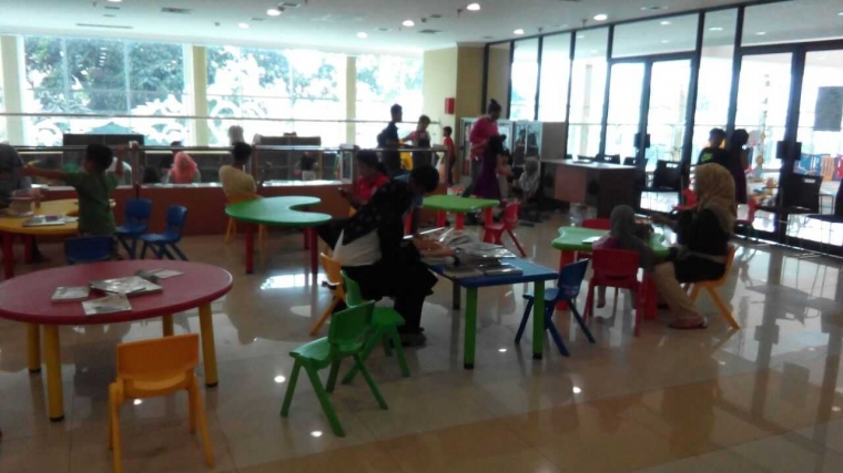 Selama saya mengunjungi perpustakaan, hampir dapat dipastikan bahwa sebagaian besar pengunjung perpustakaan adalah para mahasiswa/pelajar ataupun para kaum 'jomblo' yang mengisi waktunya dengan membaca. Jarang saya jumpai di dalamnya ibu-ibu atau istilah ngetrend-nya "Mahmud" atawa mamah muda, misalnya, yang mengisi hari-harinya sembari mengampu anaknya di perpustakaan.